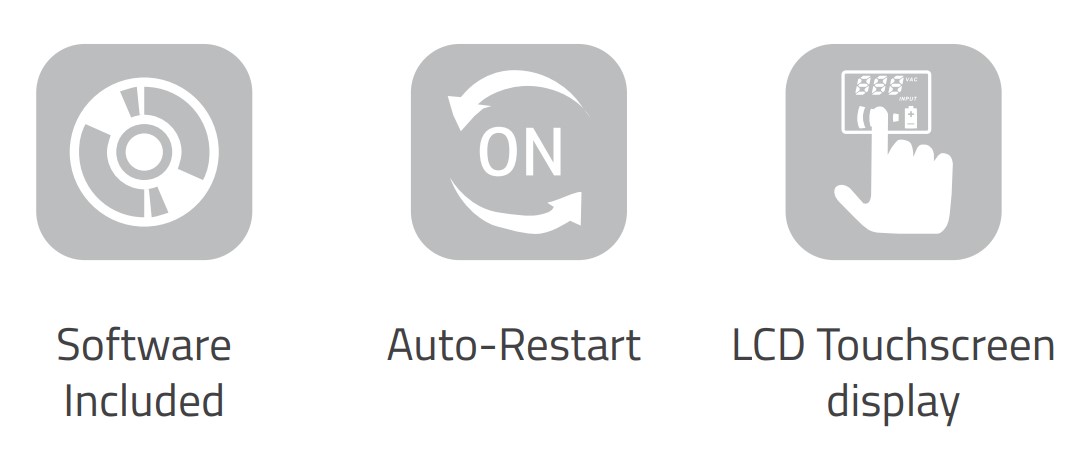 UPS posiada dwa wydajne akumulatory zapewniające stabilne działanie urządzeń przez określony czas w zależności od obciążenia. Funkcja automatycznego restartu pozwala na samoczynne uruchomienie urządzenia po przywróceniu zasilania sieciowego, co zwiększa bezpieczeństwo systemów pracujących bez nadzoru.
